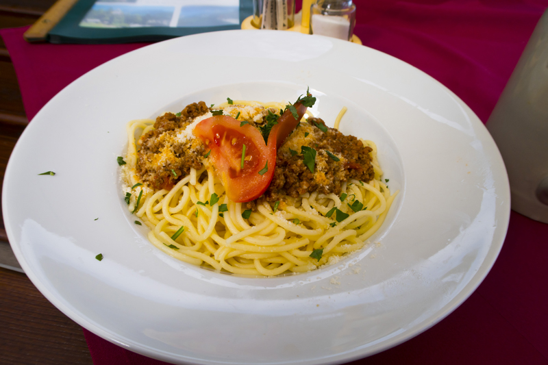 Biz Hallstatt’a gelir gelmez Sky Walk’a çıktık ve çıktığımız zaman karnımız baya bir acıkmıştı. Hazır böyle bir manzarayı bulmuşken restoran gördük ve burada kötü bir şey olacağını düşünmeden oturduk. Ancak tam bir hayal kırıklığı oldu. Ben çok klasik bir spagetti söyledim ancak tam bir hayal kırıklığı idi. Burada belki bir şeyler içebilirsiniz ama yemek yemek için doğru bir yer olmadığını söylemek istiyorum.